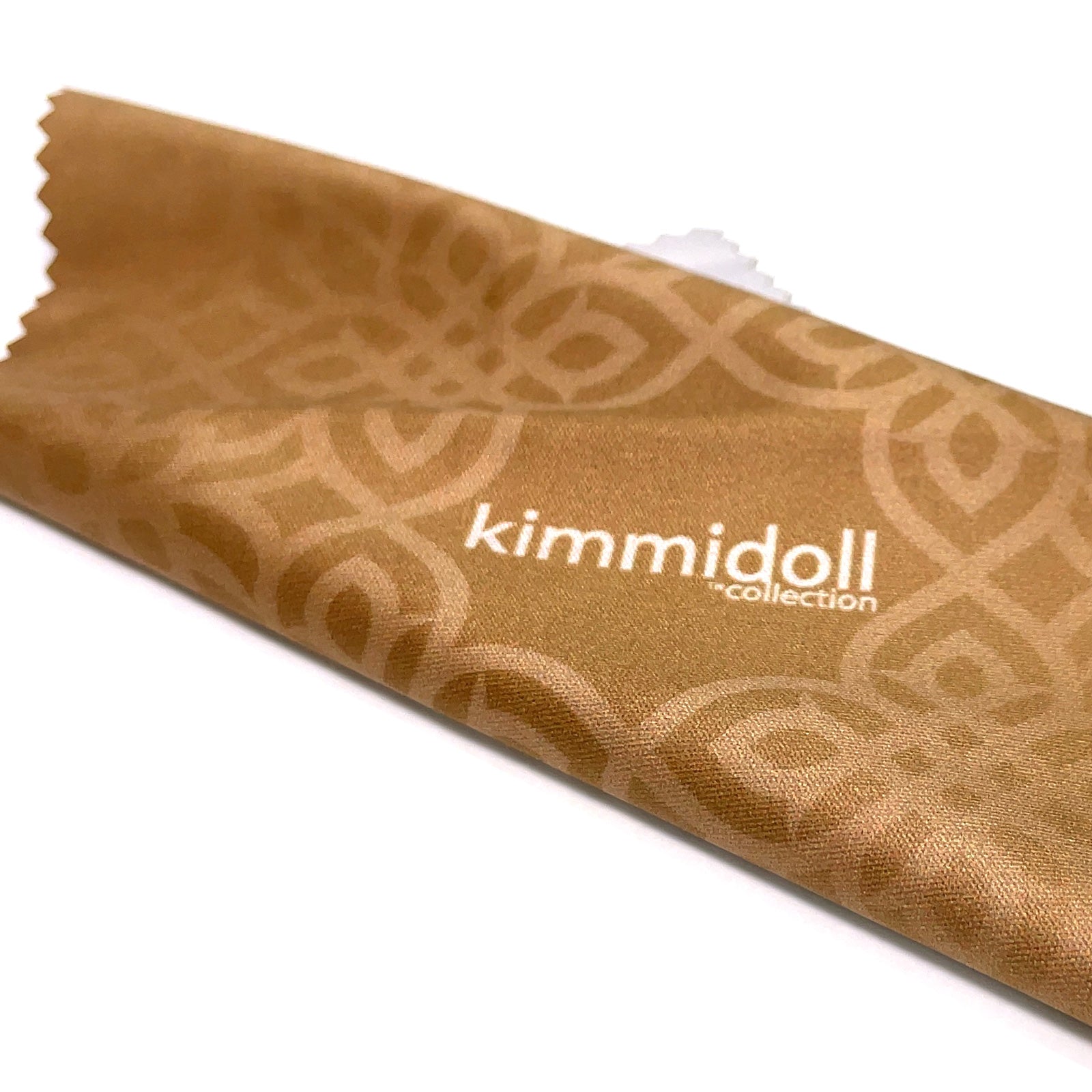 La parte frontal presenta un hermoso diseño de muñeca kokeshi, mientras que la parte posterior y el interior presentan el logotipo de Kimmidoll.